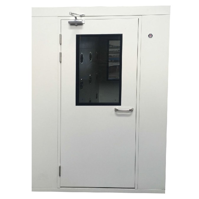 风淋室可以清除人身和物品表面附着的尘埃,减少带人洁净空气的灰尘量,同时起到兼有气闸室功能,可防止不洁净空气由门侵入,以配合洁净空调系统确保洁净室达到所需洁净度。